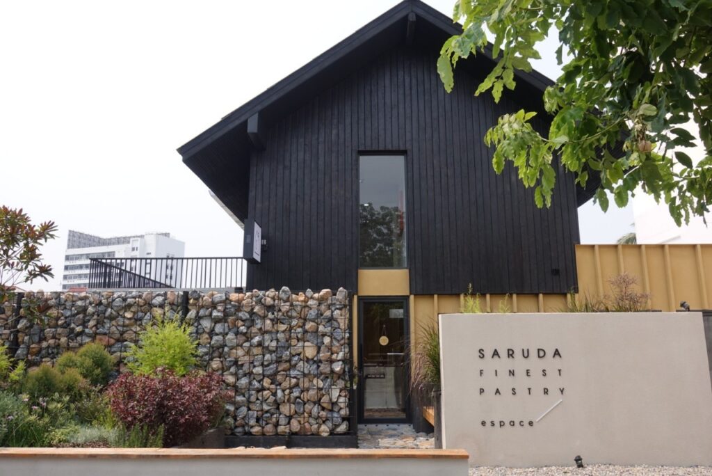 อาคารภายนอกเดิมทีตัวอาคารเป็นบ้านเก่ายุค 70’s ทางผู้ออกแบบจาก PAOWAN.studio อยากให้คงกลิ่นอายเสน่ห์ความเก่าของตัวบ้านไว้ โดยครึ่งบนของตัวอาคารมีการใช้วัสดุไม้สนเผาไฟ ในภาษาญี่ปุ่นมีชื่อว่า “Yakisugi” เป็นตัวสื่อนำถึงวัสดุที่มีความเก่า เพราะเป็นเทคนิคการผลิตแบบโบราณของญี่ปุ่น เผาไม้ให้ได้คุณลักษณะผิวหน้าไม้เหมือนถ่าน และนำมากรุผนังโดยรอบบริเวณของอาคาร ส่วนครึ่งล่างของตัวอาคารได้มีการถอดองค์ประกอบต่างๆมาจากขนม Signature ของทางร้านที่มีชื่อว่า Orange Bliss ซึ่งเป็นลักษณะเป็นขนมผลส้มที่ทำให้เหมือนกับผลส้มจริงๆ เลยนำพื้นผิวและสีสันของขนม Orange Bliss มาถ่ายทอดผ่านแมททีเรียลนั้นก็คือการใช้เทนิคพ่นสีผนัง Texture ลวดลายเป็นเม็ดจุดไข่ปลาสีส้ม เพื่อให้สอดคล้องกับ Concept ที่ทางผู้ออกแบบได้คิดไว้นั้นก็คือการผสมผสานระหว่างขนมหวานกับงานสถาปัตยกรรมให้เข้ากัน